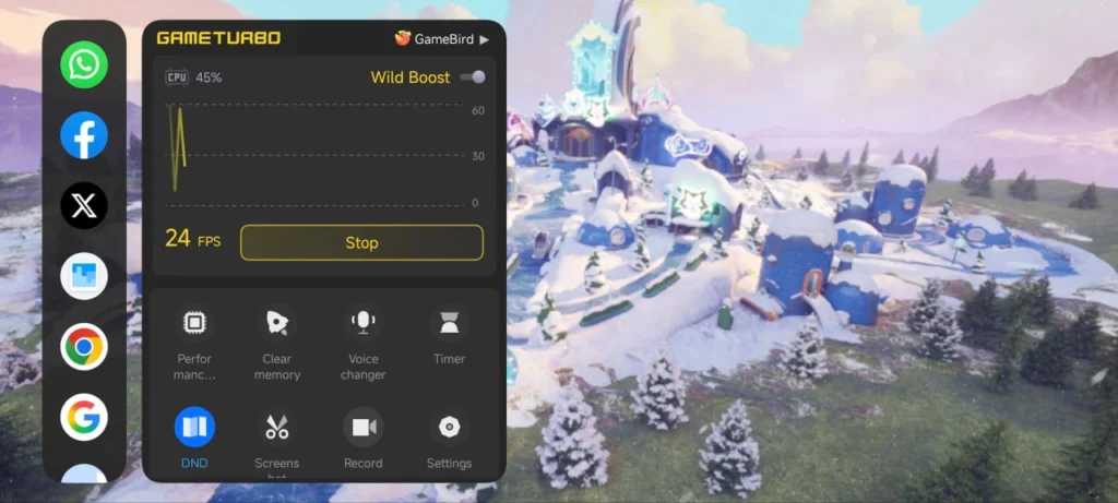 GAME TURBO is mentioned in top left, and we will see the GameBird option too, and below we will see the FPS which is currently available in the Game which you are playing. If you compare with old version then I am sure 99% of users will say new one is not interesting, what are your thoughts regarding it? Icons looks so ugly this time.