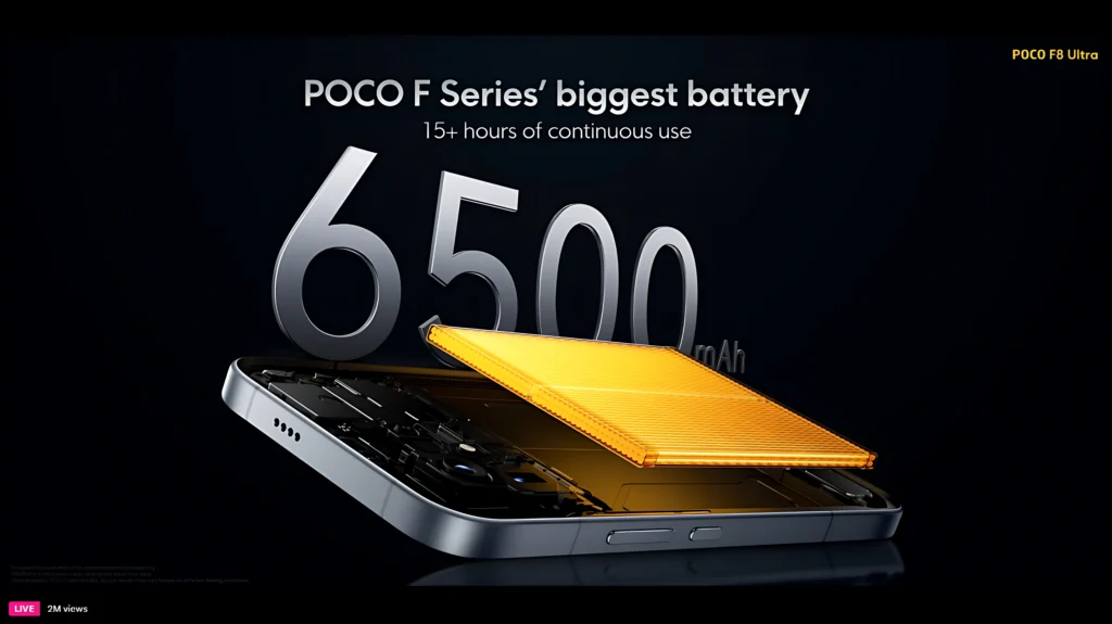 POCO F8 Pro equips Snapdragon 8 Elite which has the same Power as POCO F7 Ultra which was launched last Year, it comes with 6.59″ Display, POCO HyperRGB Display, M10 Display Panel, 3500 nits peak brightness, Ultrasonic Fingerprint Sensor and Wet Touch Display 2.0. On the other hands, they launched POCO F8 Ultra with Snapdragon 8 Elite Gen5 SoC. Camera wise these two devices are also perfect, as Ultra comes with 50MP Main Camera with OIS.
