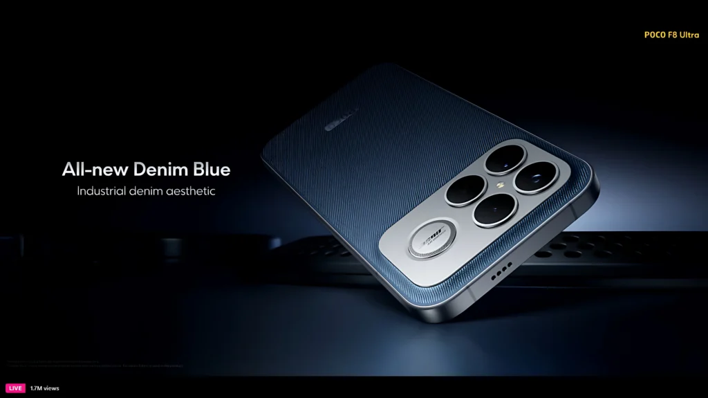 POCO F8 Ultra has Black Variant, with that they launched the Special Edition Denim Blue Edition which has Bold Design.