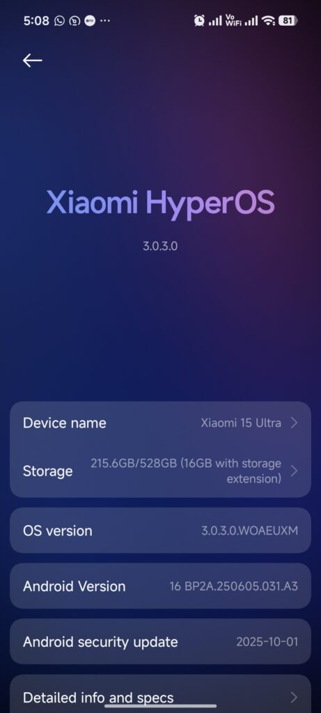 - Xiaomi 15 Ultra: OS3.0.3.0.WOAEUXM