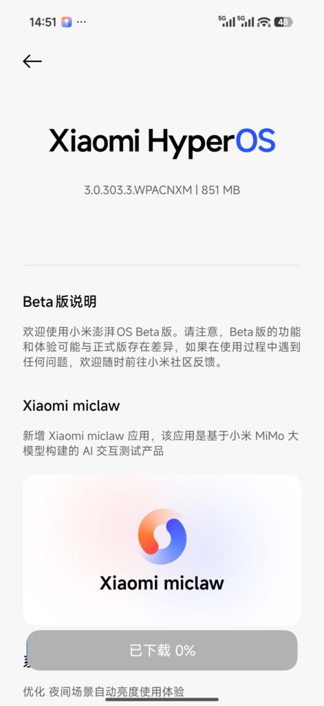Even for tech enthusiasts and geek users, we also recommend that they back up their data in advance and test and experience it in a controlled environment. Users who have obtained the closed-beta access will receive a specific version of the system push and must upgrade before they can use Xiaomi Miclaw.